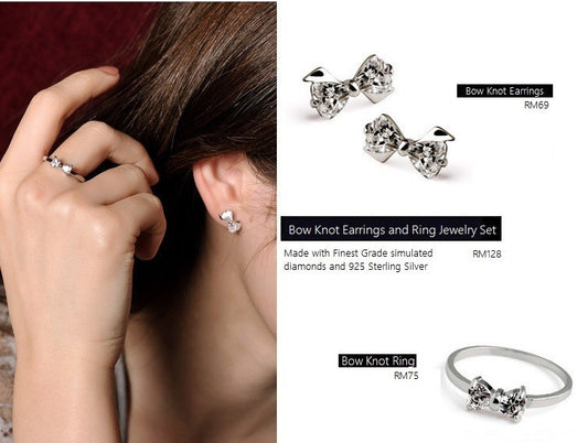 Bow Knot 925 Sterling Silver Jewelry Set (Earrings + Ring)